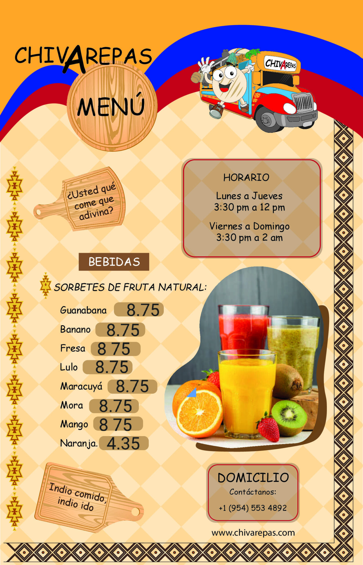 Horario: Lunes a Jueves 3:30pm a 12pm Viernes a Domingo 3:30 pm a 2am